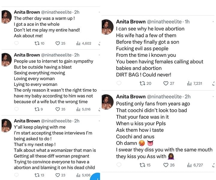Anita Brown claimed in her rant that Davido forced Chioma to have a series of abortions before they welcomed their son, Ifeanyi, who is now deceased.